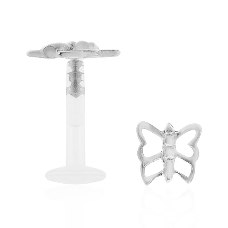 Piercing clipable pour le tragus ou l'helix en or blanc 18 carats (750/1000) avec papillon fin ajouré.