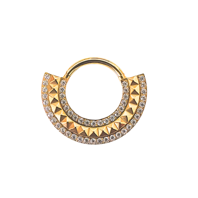 Anneau clicker motif "inca" en TITANE PVD GOLD ASTM F-136 (GRADE 23) .