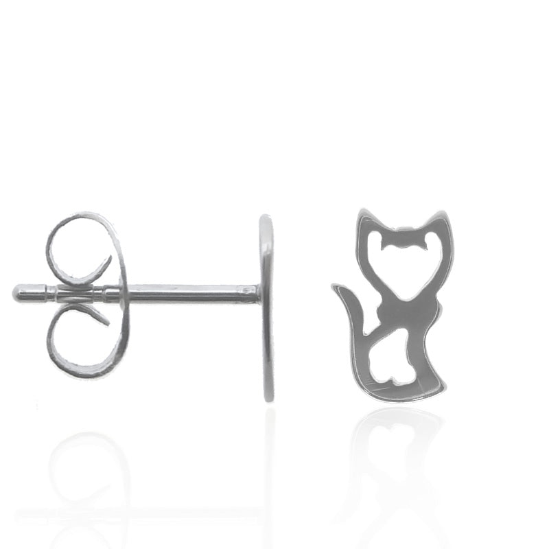 Boucle d'oreille zéro allergie avec chat en acier chirurgical.