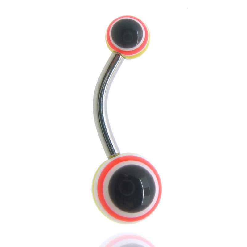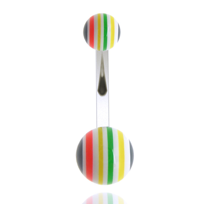 Piercing de nombril en acrylique avec rayures et barre en acier chirurgical.