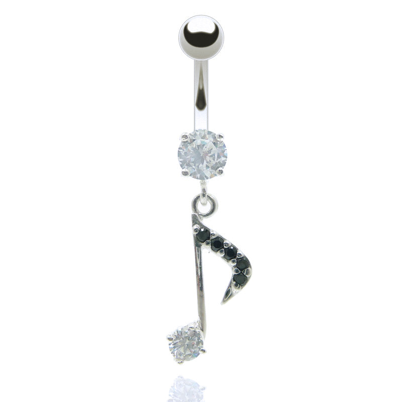 Bijou piercing de nombril pendentif avec motif note de musique et brillants.