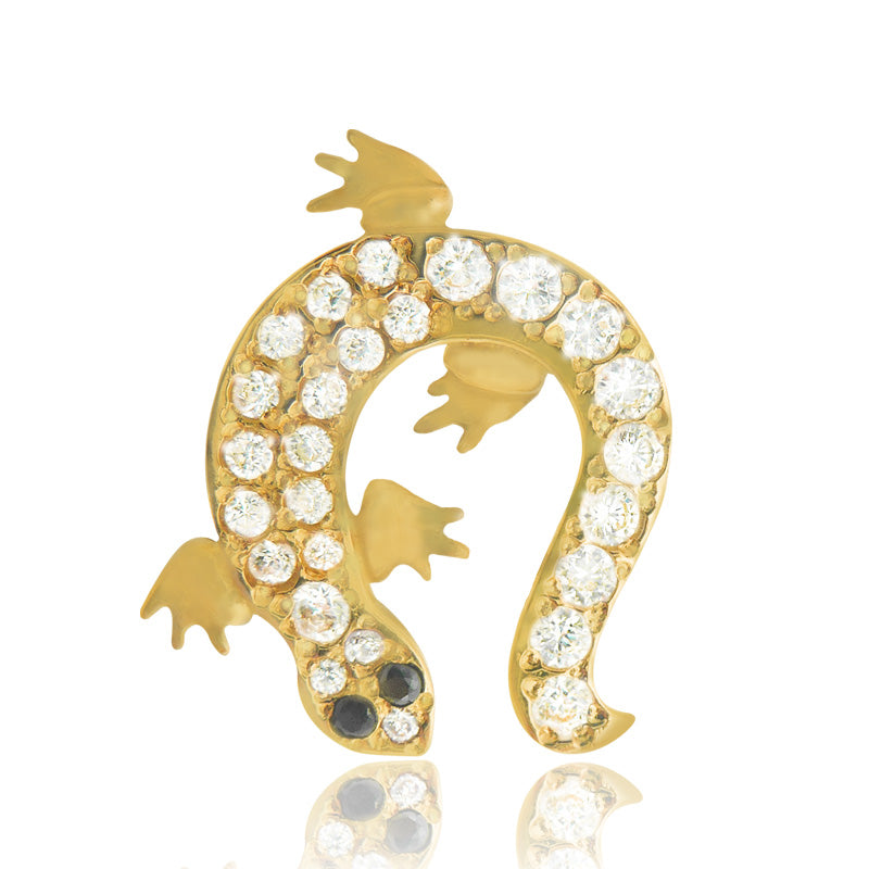 Piercing nombril or jaune 18 carats inversé avec motif salamandre orné d'oxydes de zirconium blancs.