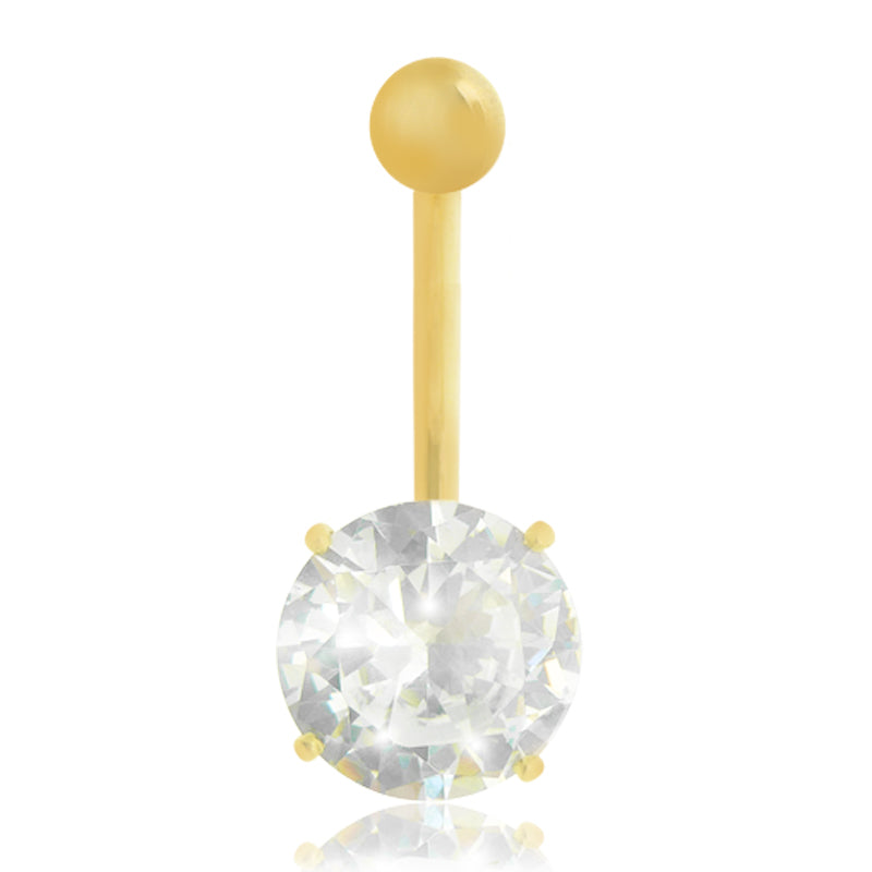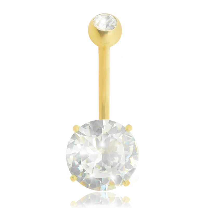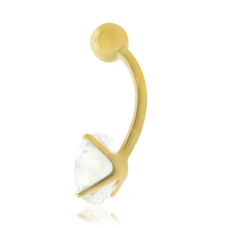 Piercing de nombril en or jaune 18 carats (750/1000) avec un oxyde de zirconium blanc.