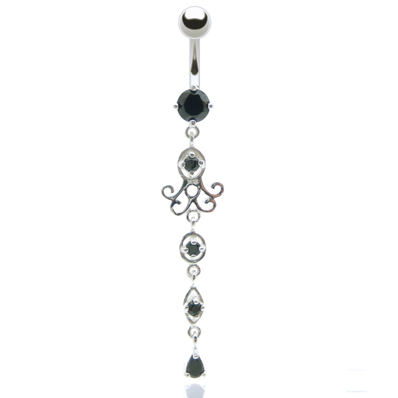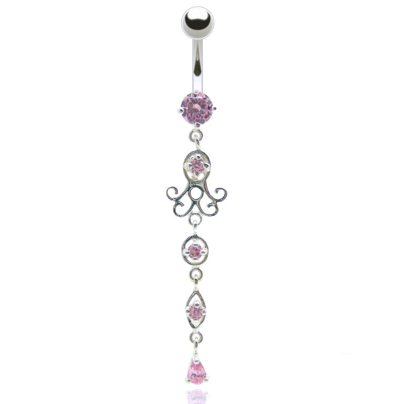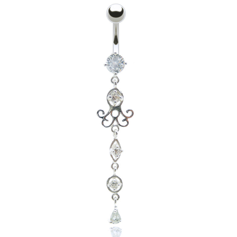 Piercing de nombril avec pendentif orné d'oxydes de zirconium.