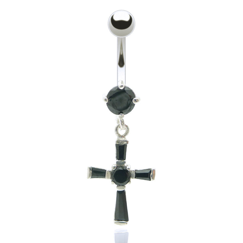 Piercing de nombril avec croix pendentif ornée de zircons.