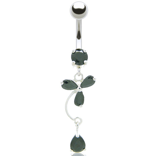 Piercing nombril pendentif trèfle orné zirconiums