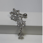 Piercing nombril pendentif inversé avec 2 fleurs en acier chirurgical