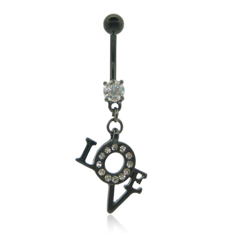Piercing nombril pendentif "Love" noir